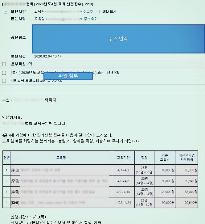 참고로 교육신청서 배부 메일은 아래와 같다.
