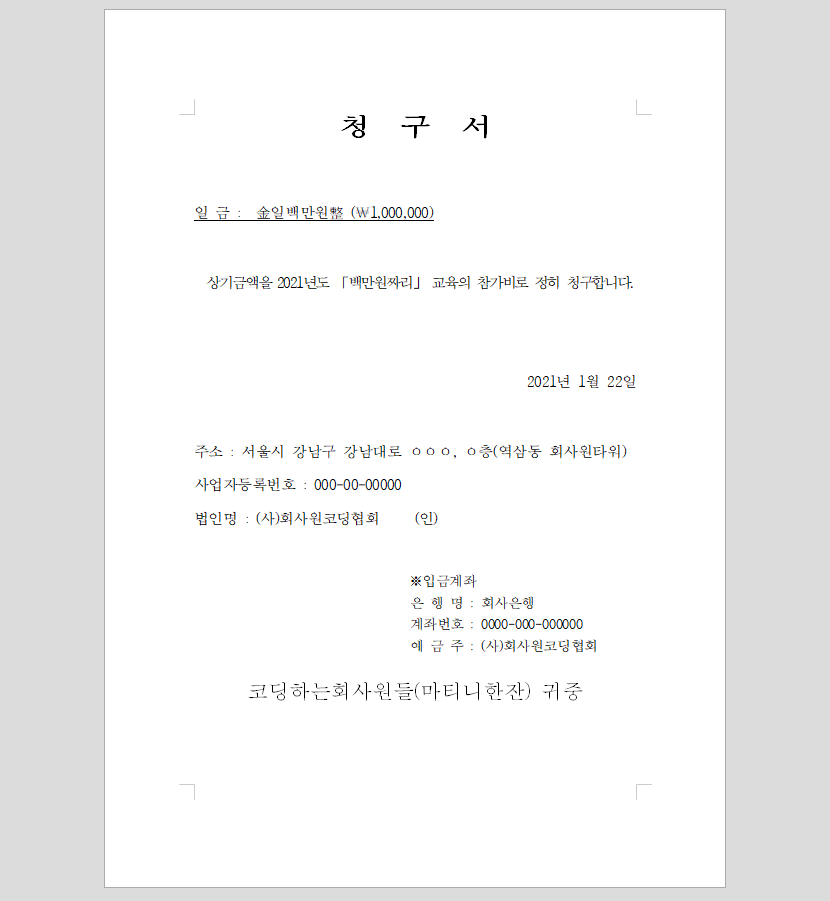 예제 : 청구서(응용편에서 현재 절찬리 포스팅중)
