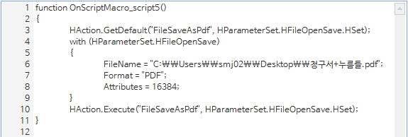 hwp.HParameterSet.HFileOpenSave.FileName = "C:\\Users\\smj02\\Desktop\\청구서+누름틀.pdf"