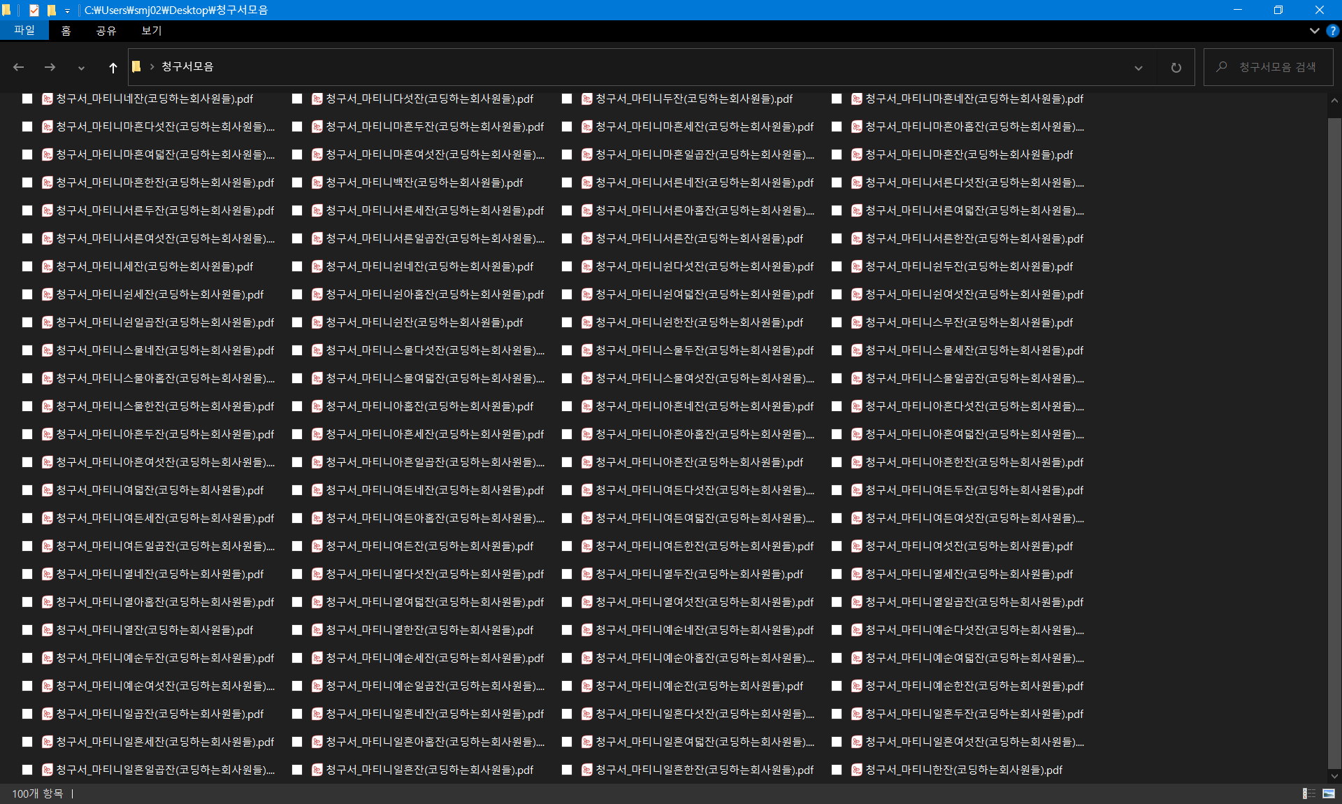 100번째 PDF파일을 열었는데 100번째 사람의 내용이 아닐 것이다.