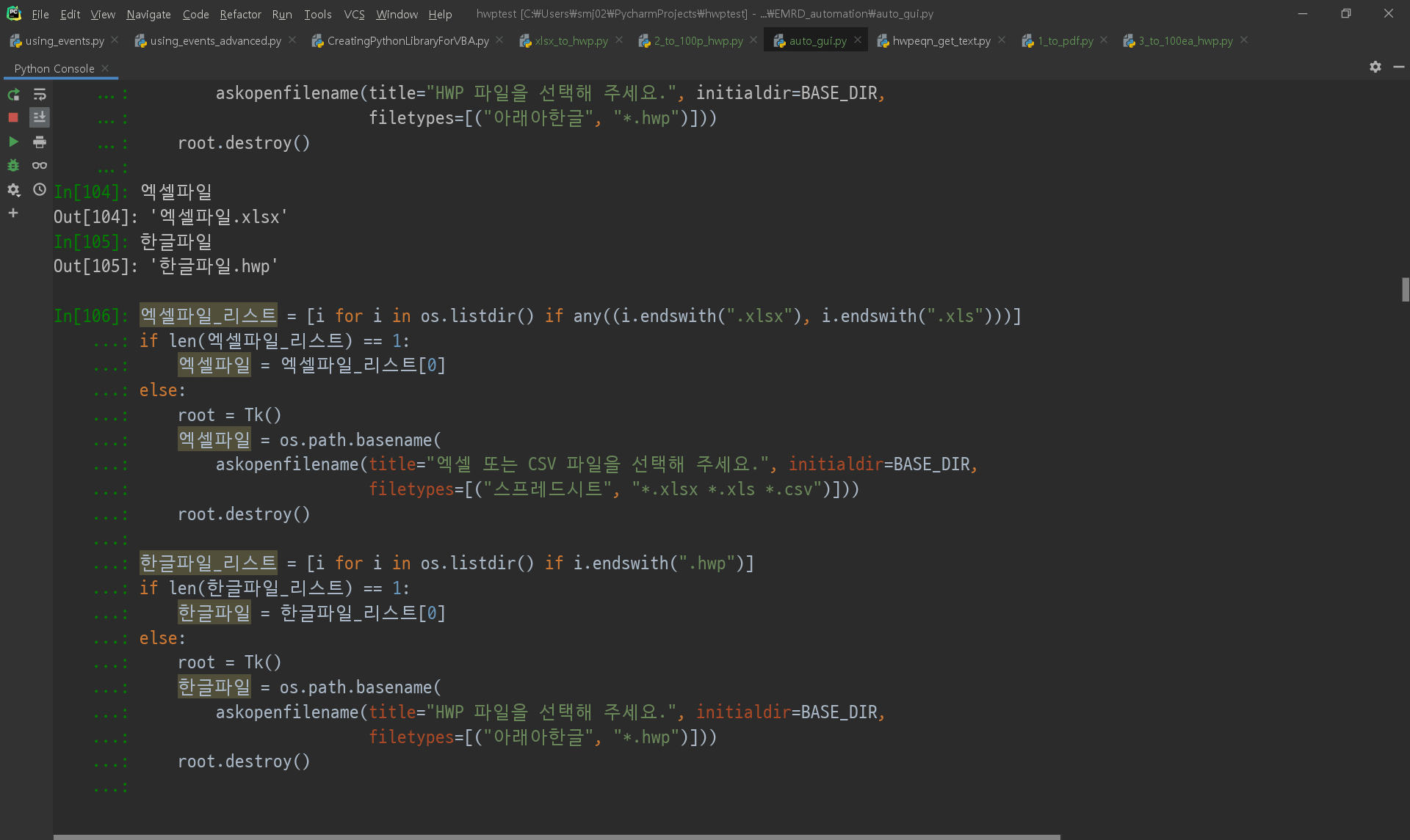 2. 한/글 및 엑셀파일의 이름이 바뀌어도 실행되며, 특정할 수 없는 경우 GUI가 뜬다.