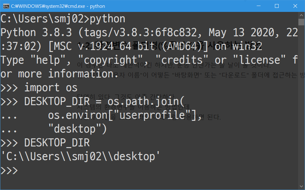 현재 우리의 코드는 경로가 모두 "c:\users\사용자명\desktop\특정경로" 형식이기 때문에 오류가 발생할 것이다.