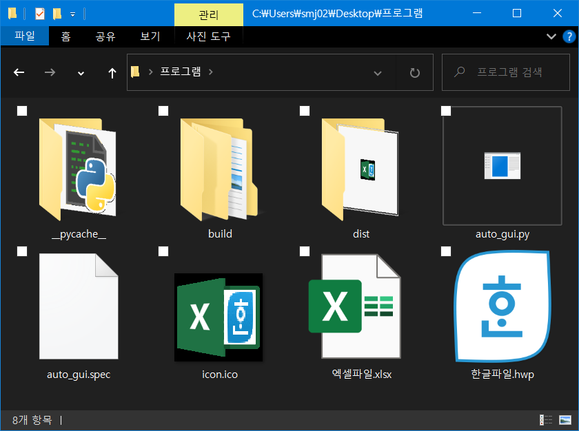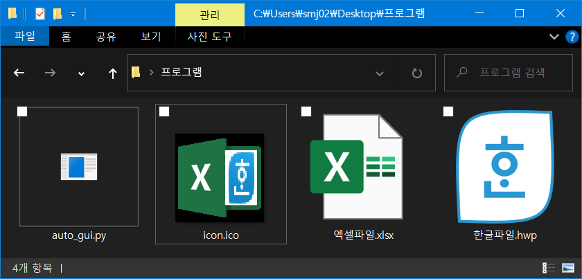 생성한 아이콘을 파이썬 코드파일이 위치한 폴더에 복사해준다.