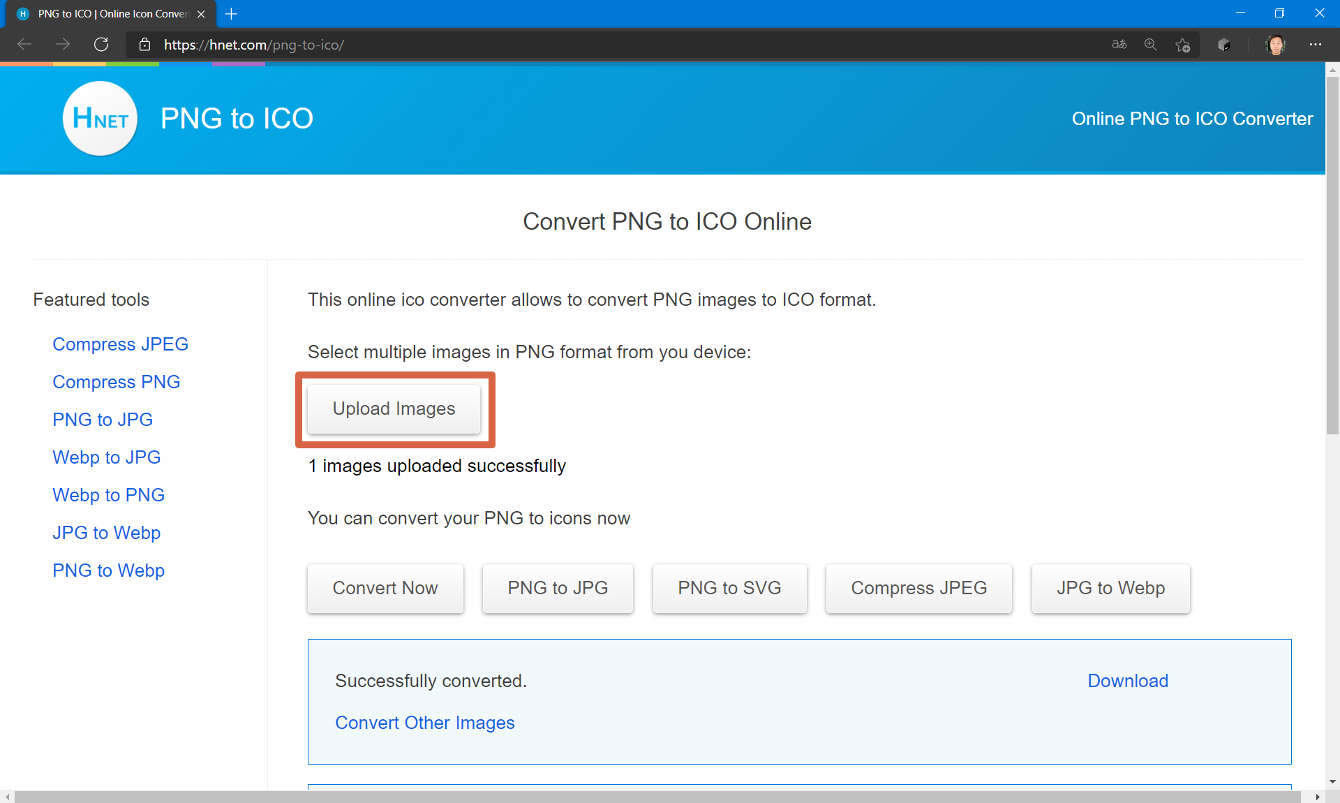 이 파일을 가지고 PNG to ICO | Online Icon Converter (hnet.com)에 가서 아이콘(ICO)파일을 생성한다.