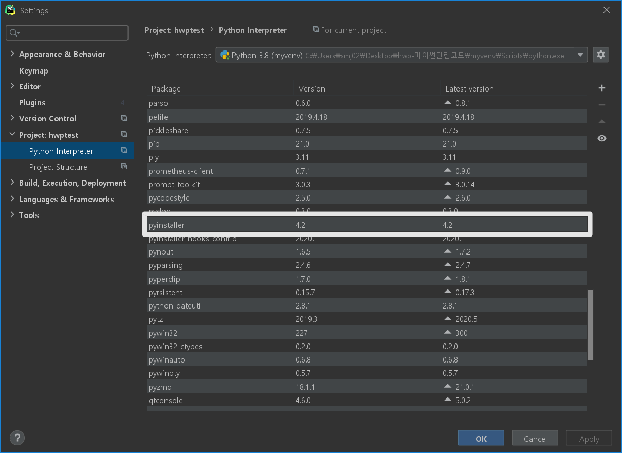 설치된 pyinstaller 모듈은 4.2버전이다.