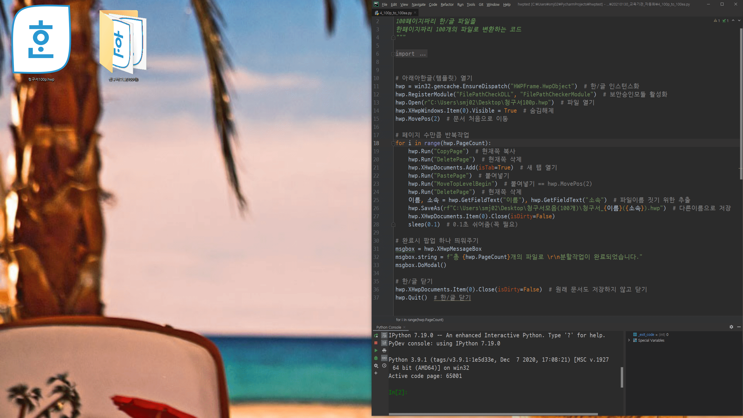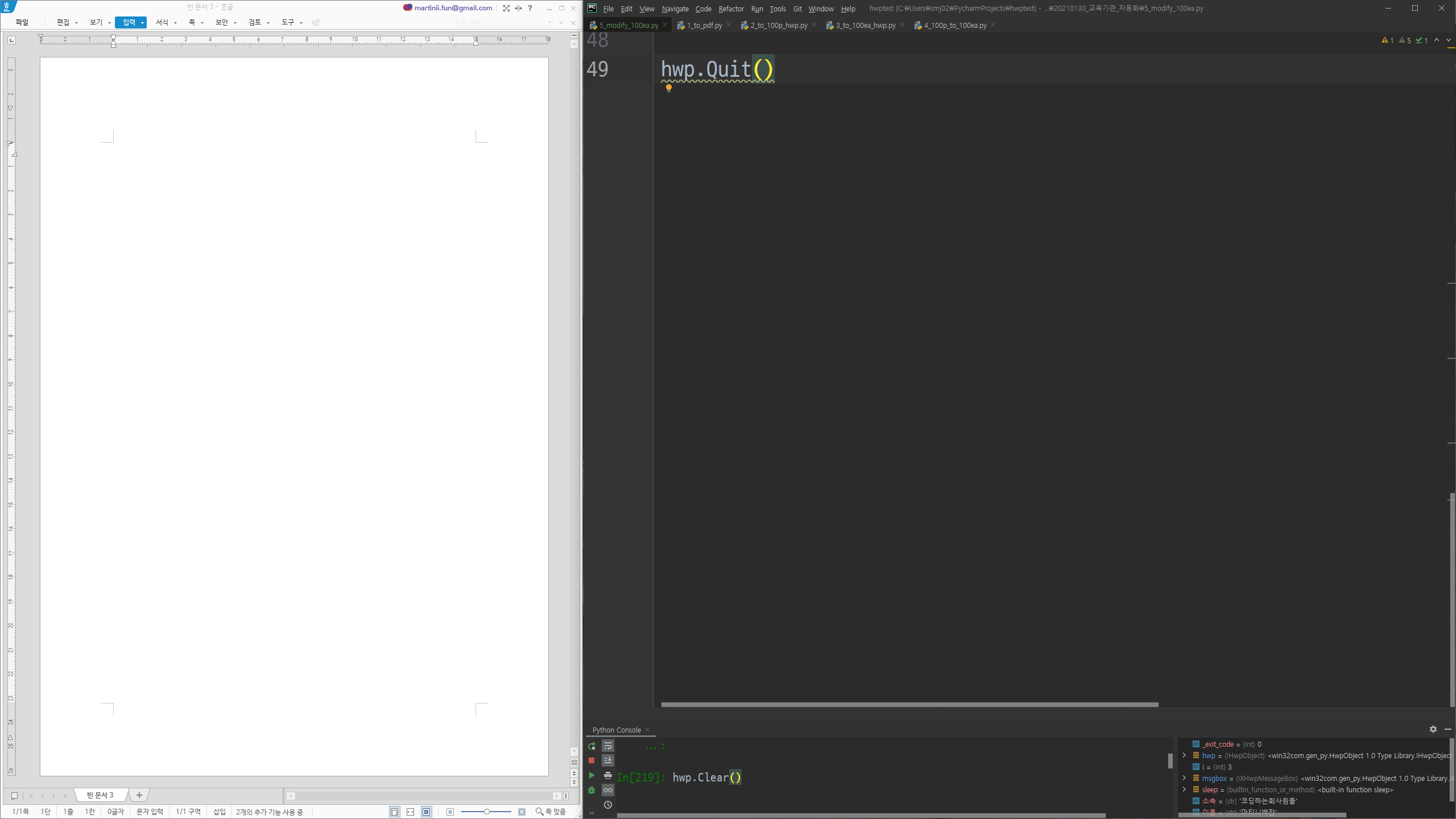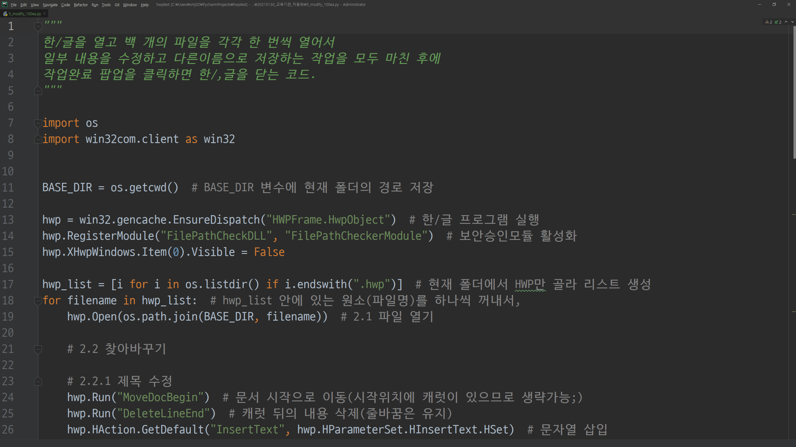 2. 100개의 HWP파일을 순회하면서 하나씩 열고 닫기