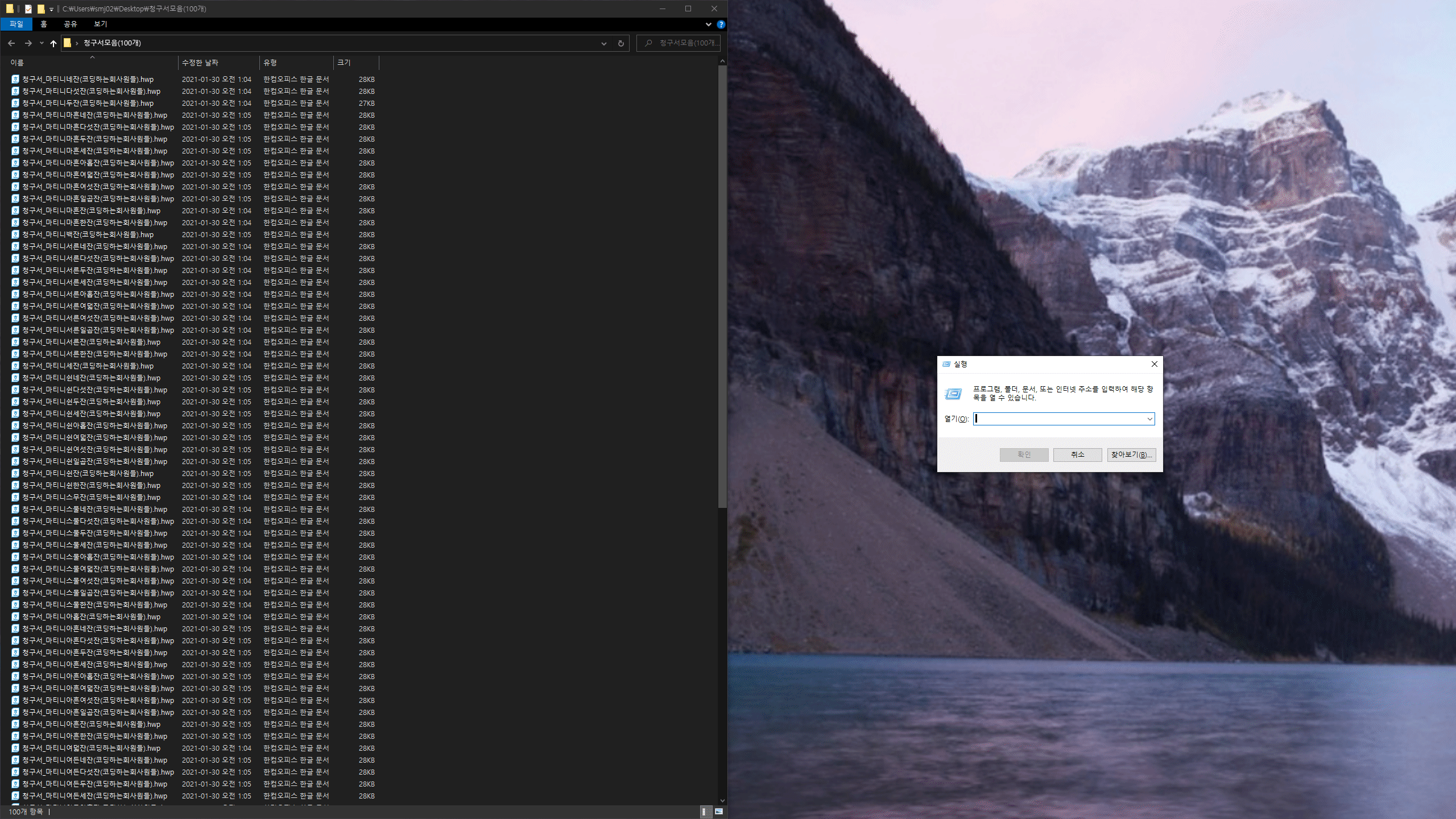 한/글을 열고 백 개의 파일을 각각 한 번씩 열어서
