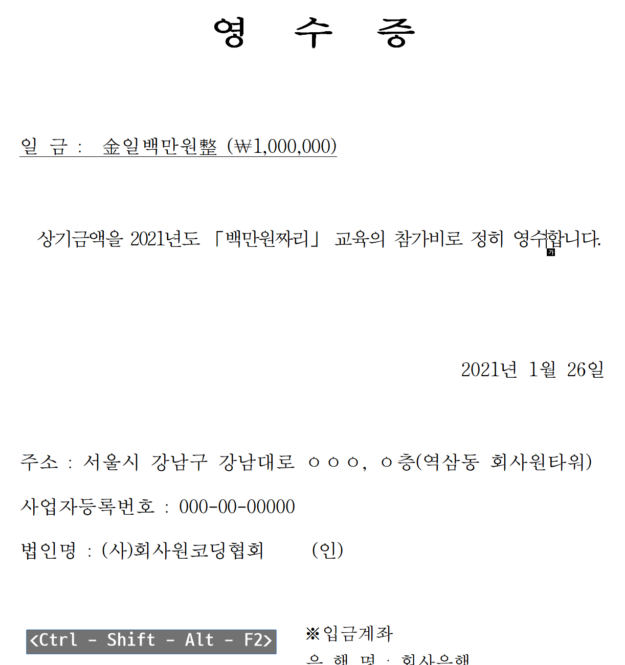 이번 시간에는 지난 청구서를 복습한다는 기분으로, 비슷한 서식의 "영수증"을 작성해보자.