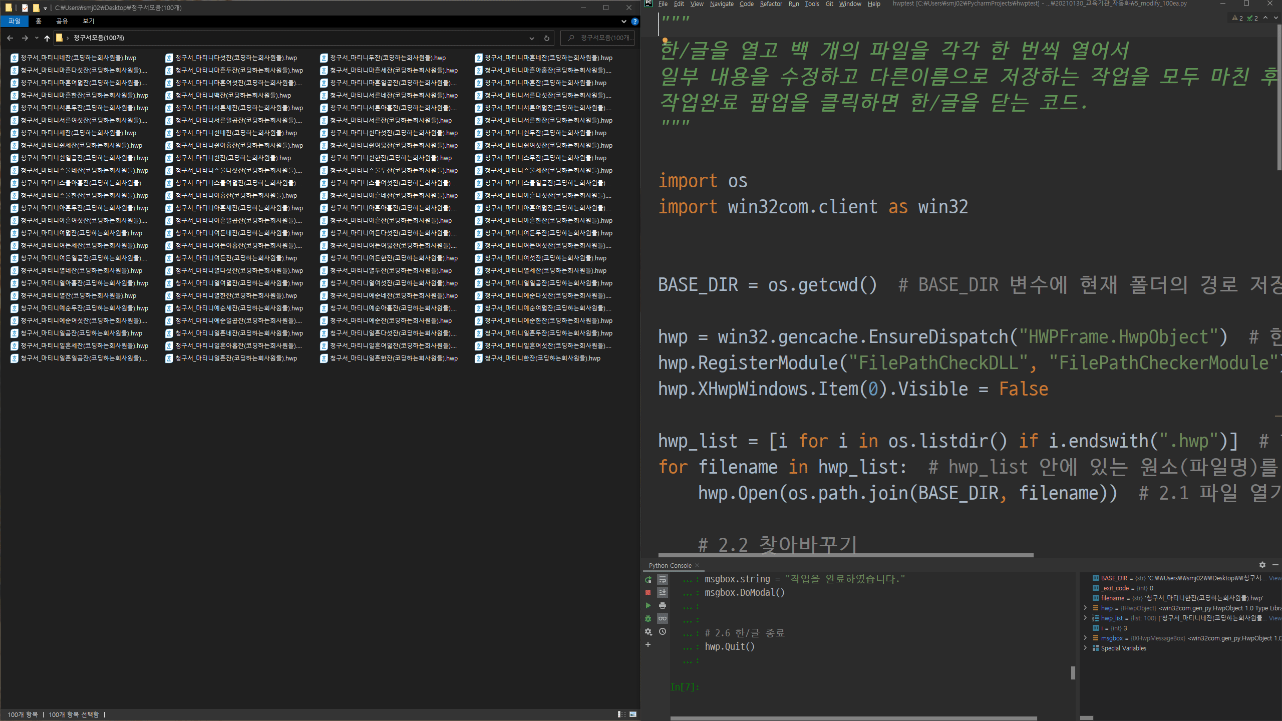 2. 100개의 HWP파일을 순회하면서 하나씩 열고 닫기
