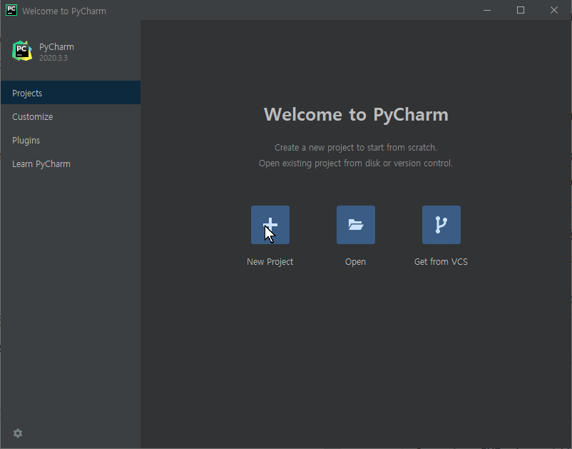 설치를 완료하셨다면 파이참을 실행해봅시다.