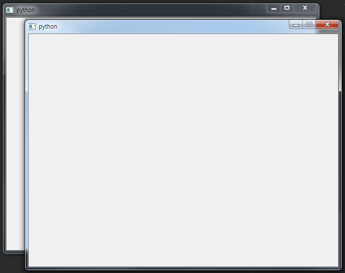 우리의 GUI창이 되는 Qt위젯을 만들었습니다. 이 QWidget은 그냥 제목줄이 하나 있는 빈 창 위젯을 생성합니다. 이 안에다 이것저것 다른 위젯이나 레이아웃을 넣을 수도 있고, 심지어 아무 것도 안 넣어도 실행됩니다. 지금처럼요. 제목을 설정하지 않으면 "python"이 입력되어 있습니다. 당분간은 이 QWidget 안에다가 이것저것 다른 위젯을 넣는 방식으로 튜토리얼을 진행해볼 예정입니다. 이와 비슷한 위젯으로는 QMainWindow라는 게 있는데 제목줄 아래로 메뉴바나 아이콘탭을 추가한다든지 하단에 정보표시줄을 추가한다든지 하는 각종 요소를 추가할 수 있습니다. 단순한 프로그램을 짤 때는 QWidget, 좀 더 체계적으로 여러 기능이 들어가는 프로그램의 GUI를 짤 때는 QMainWindow를 쓰시면 되겠습니다. 당분간은 QWidget만 써도 충분할 것 같네요. 하여튼 window라는 변수명으로 QWidget 클래스의 인스턴스를 생성했습니다. 3번라인의 QApplication은 싱글턴이지만 QWidget은 아니므로, 한 개의 Qt 프로그램 안에 여러 개의 QWidget 윈도우를 생성하는 건 가능합니다.