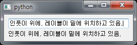 하여튼, 저런 위젯을 만들어보겠습니다. 텍스트입력란에 타이핑을 하면 결과가 하단의 레이블에 동시에 출력되는 윈도우입니다. 코드는 아래와 같습니다.