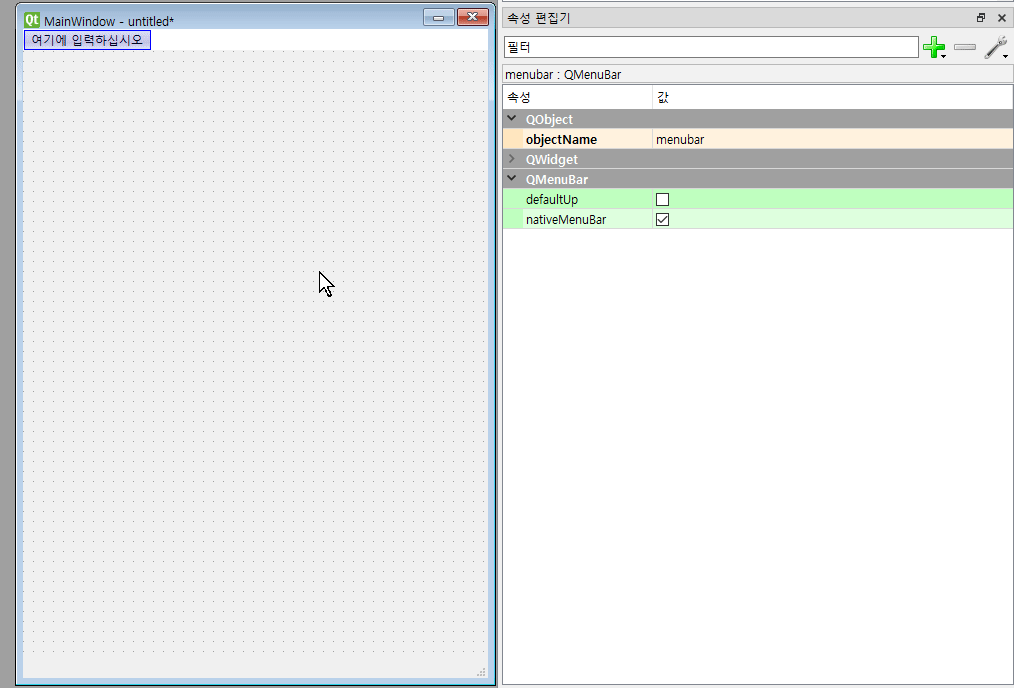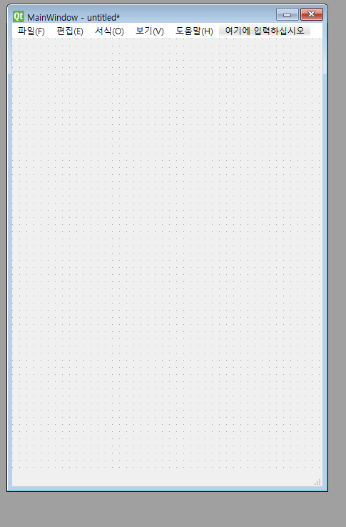 또한 QtDesigner에서 Ctrl-r을 누르면 미리보기창이 열립니다. "파일"메뉴만 완성하고 나서 미리보기(Ctrl-r)를 실행해봅시다.