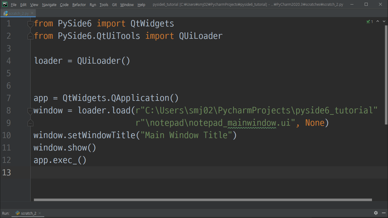 [팁2] ui파일을 .py로 변환하지 않고 바로 파이썬으로 불러오는 방법(PySide6)