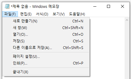 Alt-f,o 이런 식으로 말고, 메모장에 보면 아예 단축키가 정의된 메뉴들이 있죠.