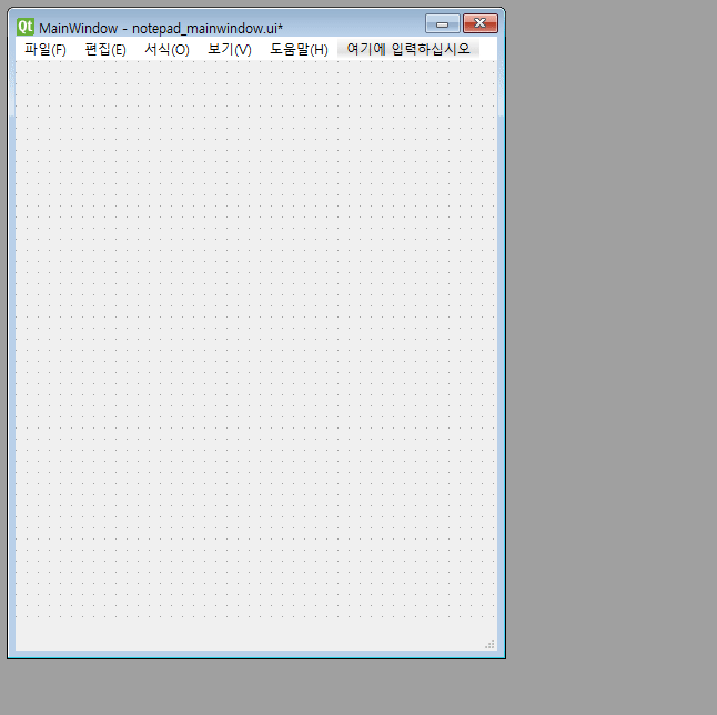 프로젝트 루트 폴더에 notepad폴더를 만들고, notepad_mainwindow.ui로 저장해봅시다.