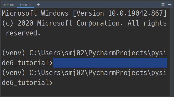 기존 포스팅을 쭉 따라오셨던 분들은 저와 같은 파이참(프로/커뮤니티 무관) 등의 IDE를 사용하고 계실 거고요. 저는 현재기준 파이썬 3.9.2 64비트 버전으로 프로젝트폴더 안에 가상환경(venv)을 만든 후 PySide6만 설치해둔 상태입니다. PySide6 버전은 6.0.2예요. 마이너버전이 달라도 큰 차이는 없을 것으로 생각합니다.