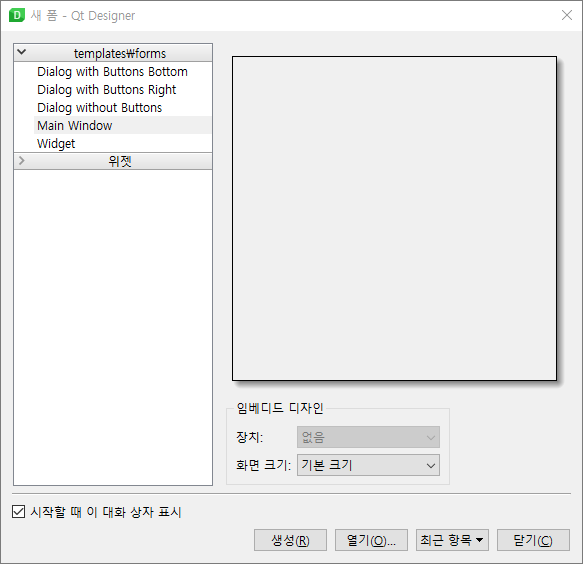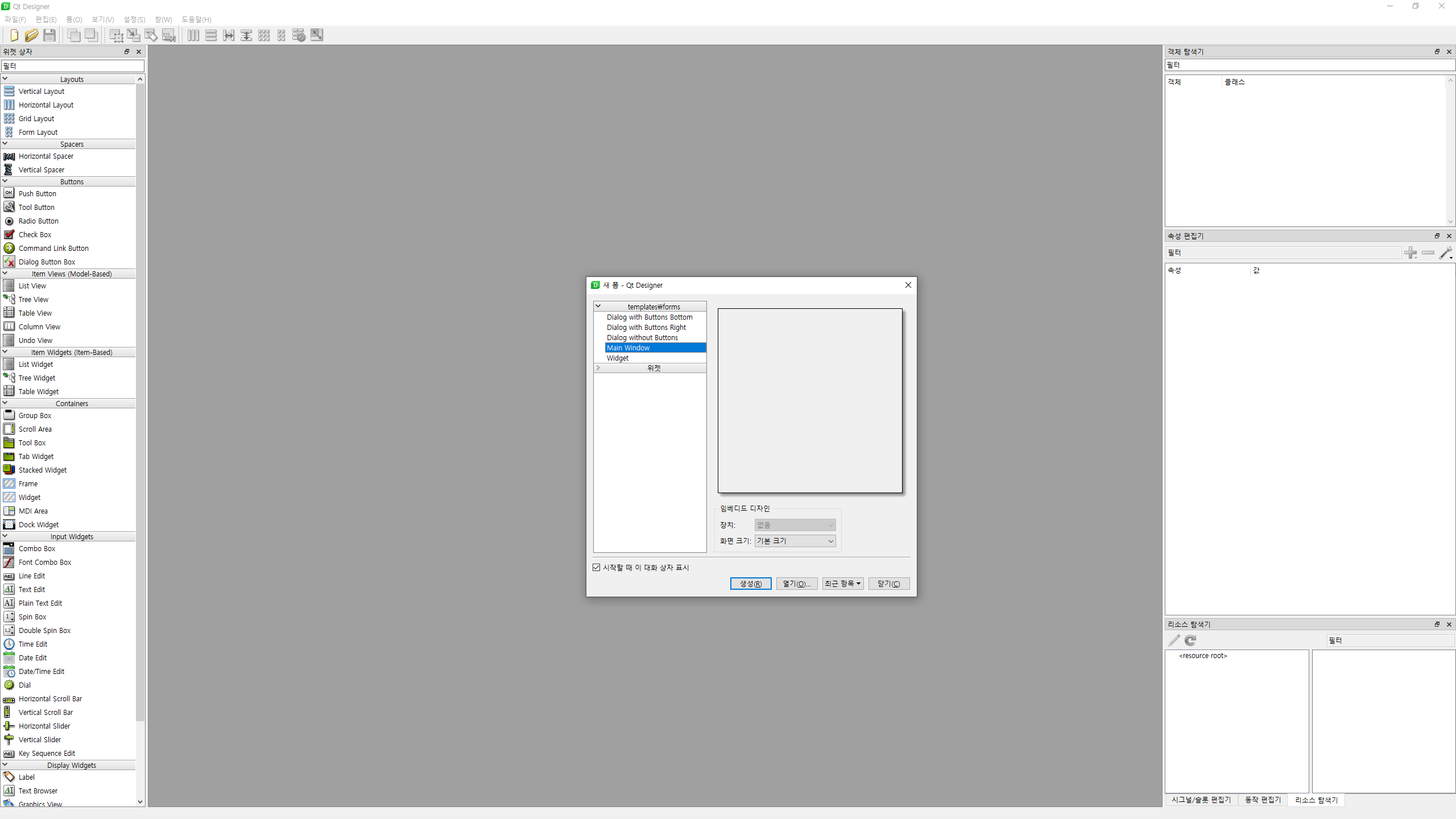 새 폼에서 Main Window를 더블클릭하여 열어봅시다.