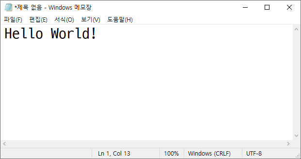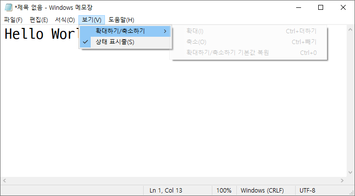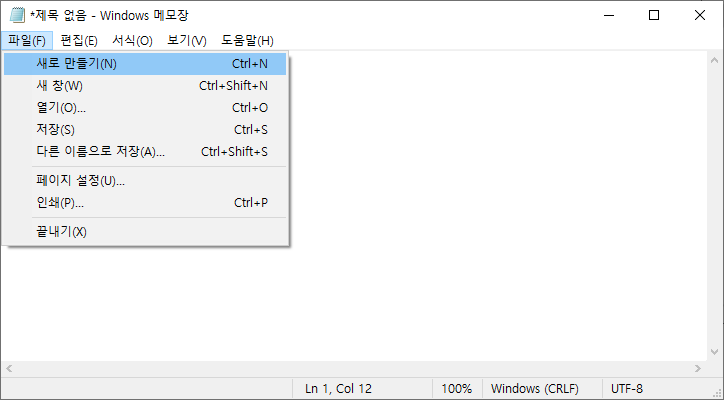 단축키를 다 정의하셨으면, 이제 원래의 메모장과 메뉴바 비교를 한 번 해보겠습니다.