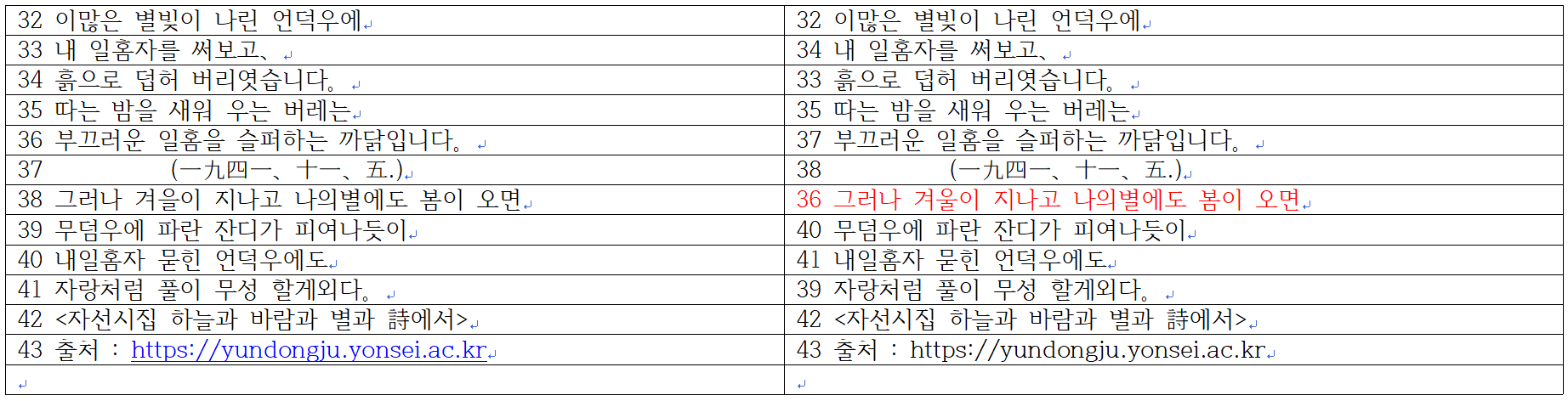 hwp.Open(os.path.join(os.getcwd(), "별헤는밤_조작.hwp")) # 조작본 열고,