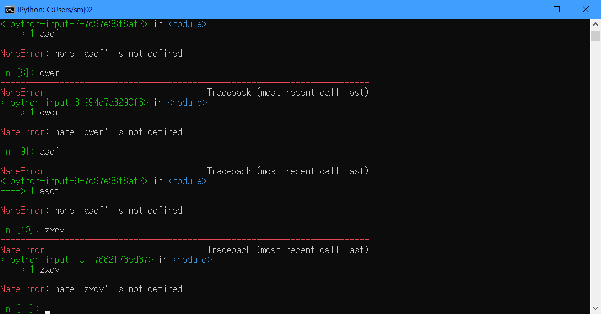 참고2) ipython이 아닌 일반 python 콘솔에서도 마찬가지로 clear all이 잘 작동합니다.