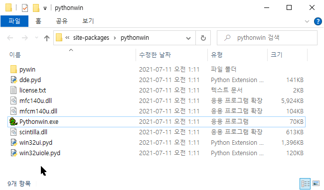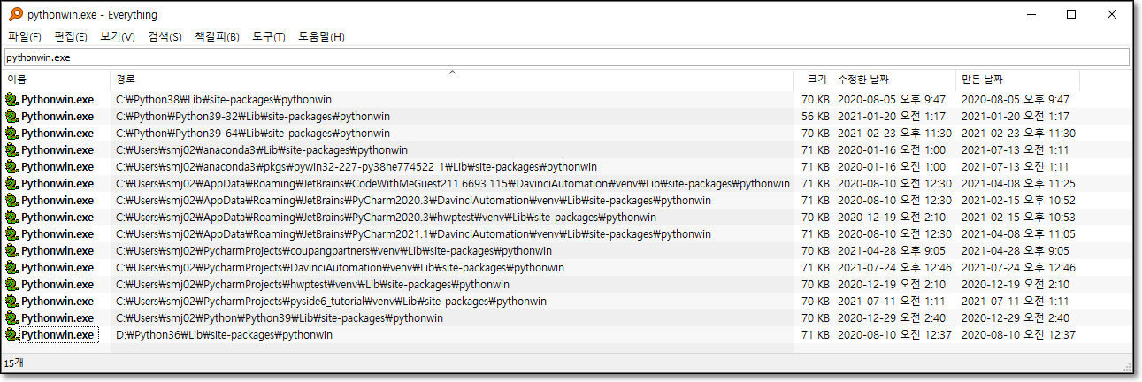 2. 가상환경을 제외한 모든 pythonwin.exe는 실행이 정상적으로 되네요.