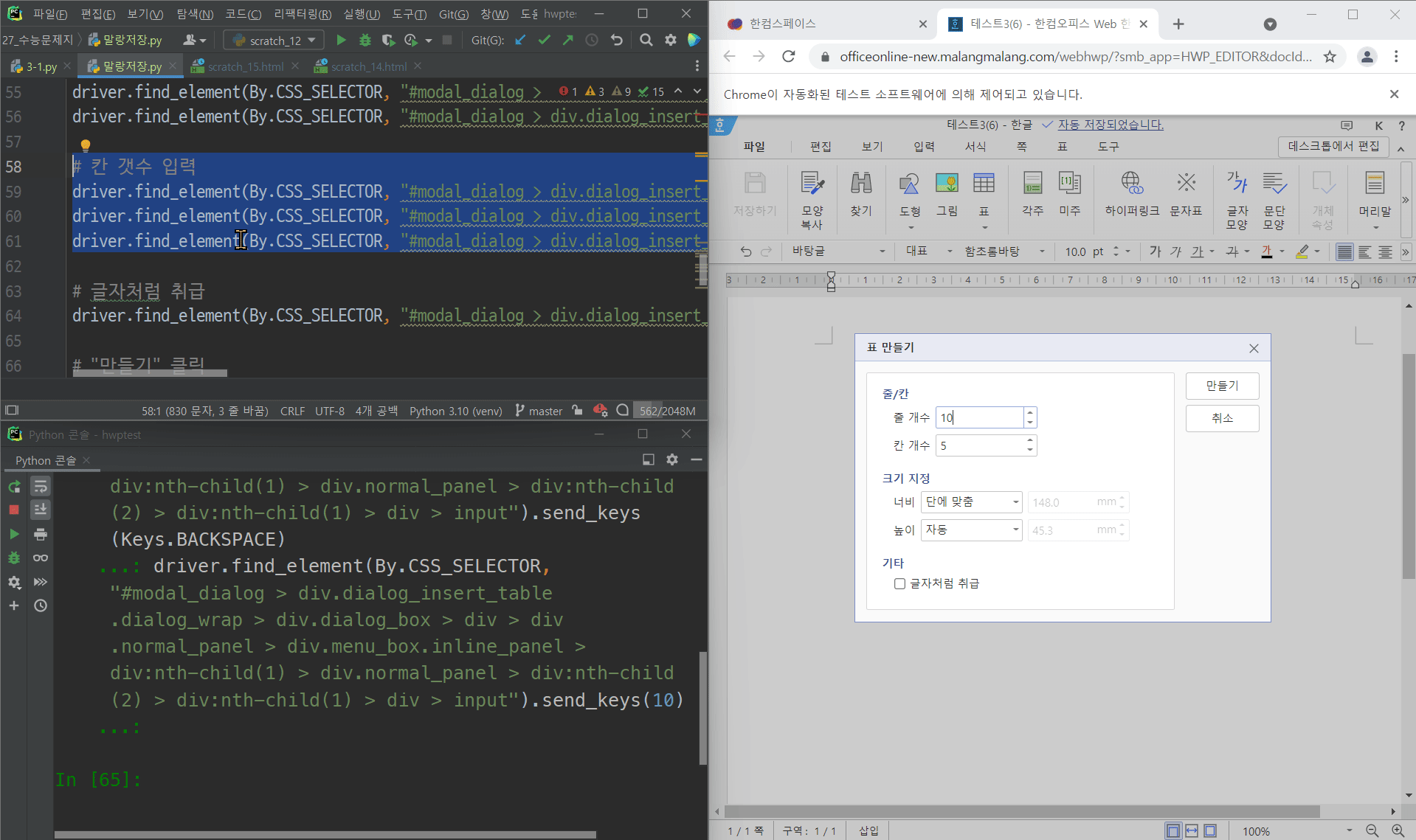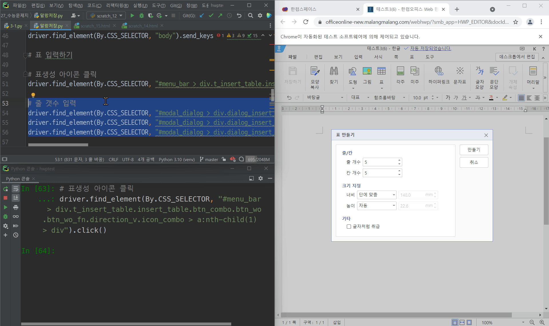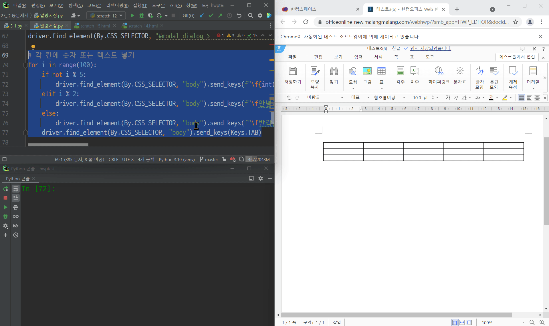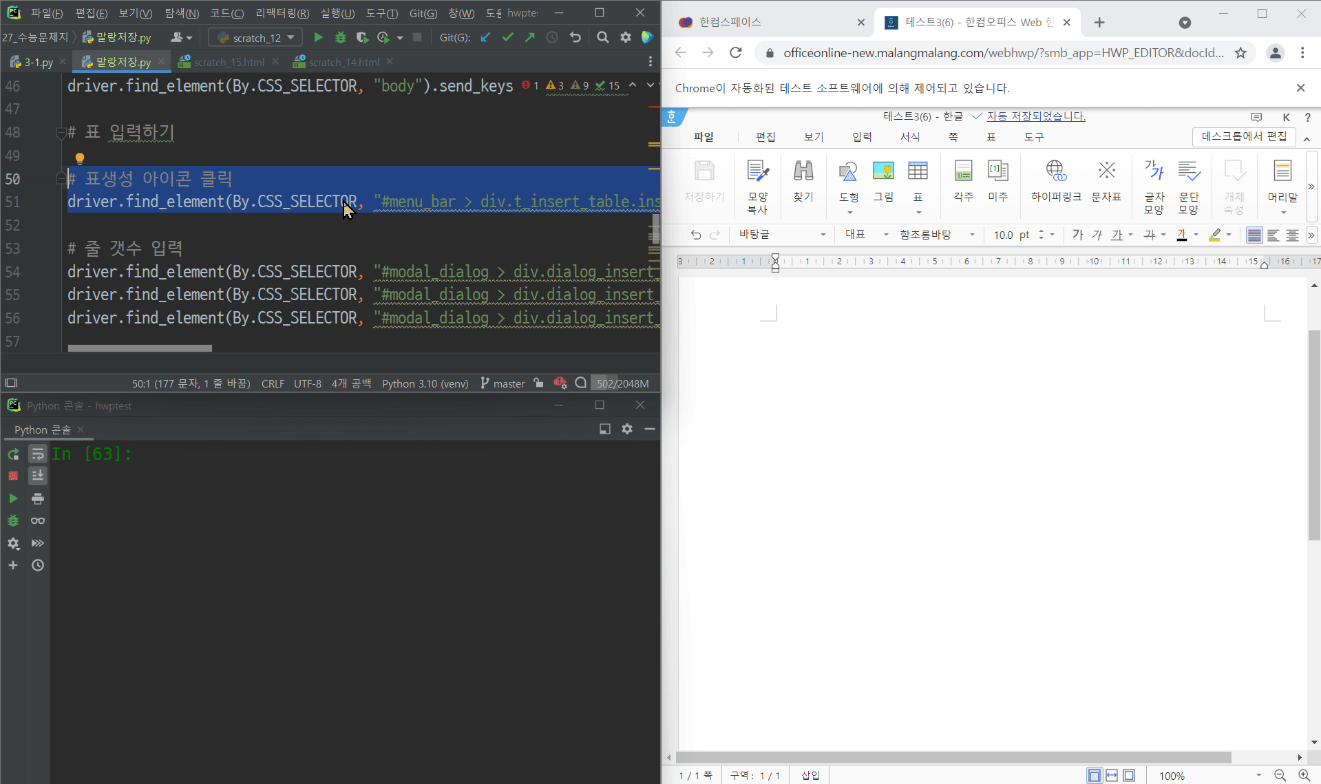 개인적으로, 파이썬으로 아래아한글 자동화 코드를 짜는 것과는