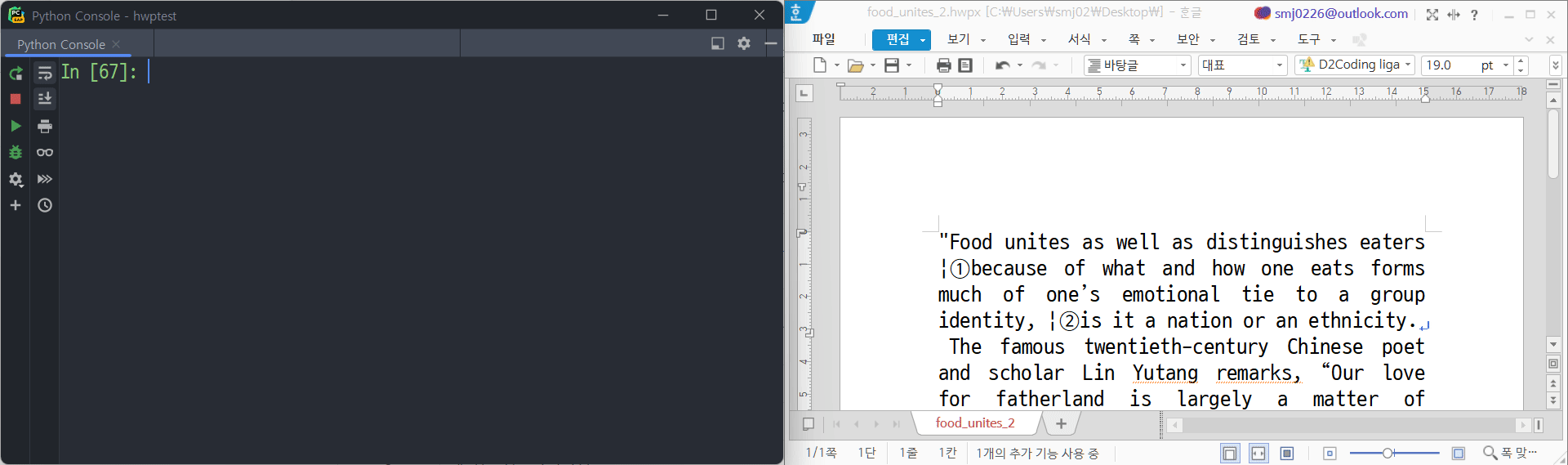 hwp = win32.gencache.EnsureDispatch("hwpframe.hwpobject") # 한/글 열기