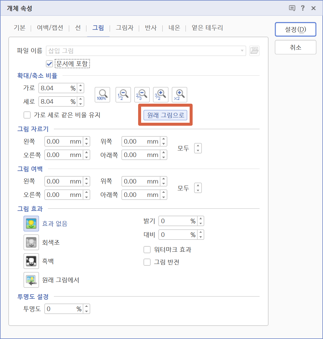 한글.Run("PictureToOriginal") # 원래 크기로