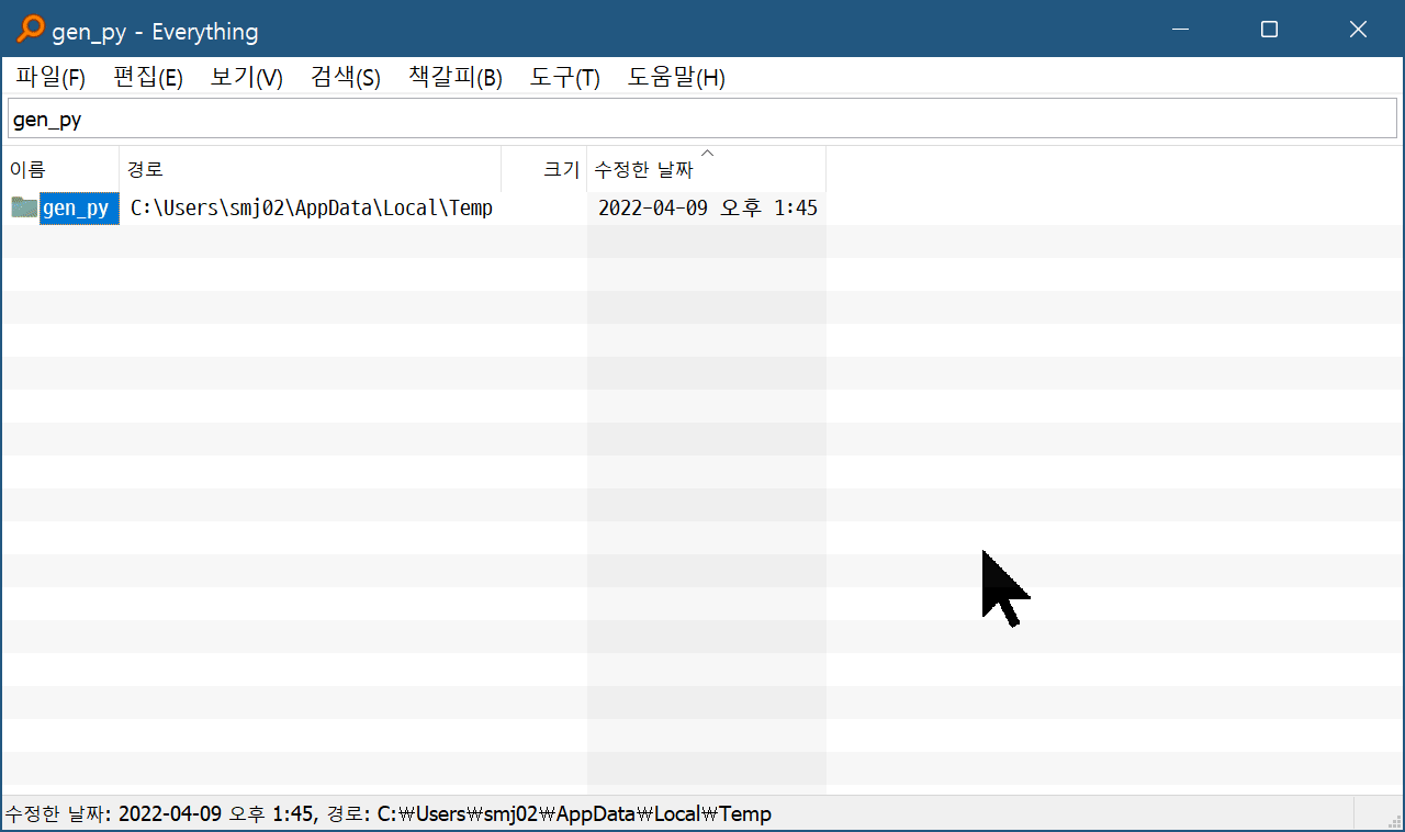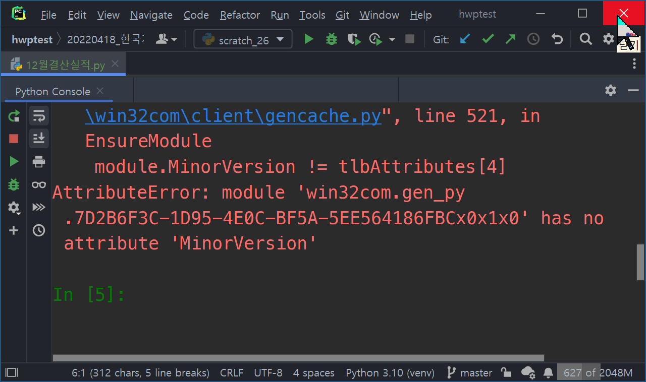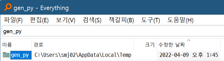 "gen_py 폴더를 찾아서 삭제한다" 입니다.
