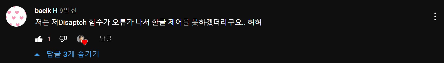 저 오류 때문에 "한글 제어를 못 하겠다"는 댓글이 올라와서 안타까웠습니다.