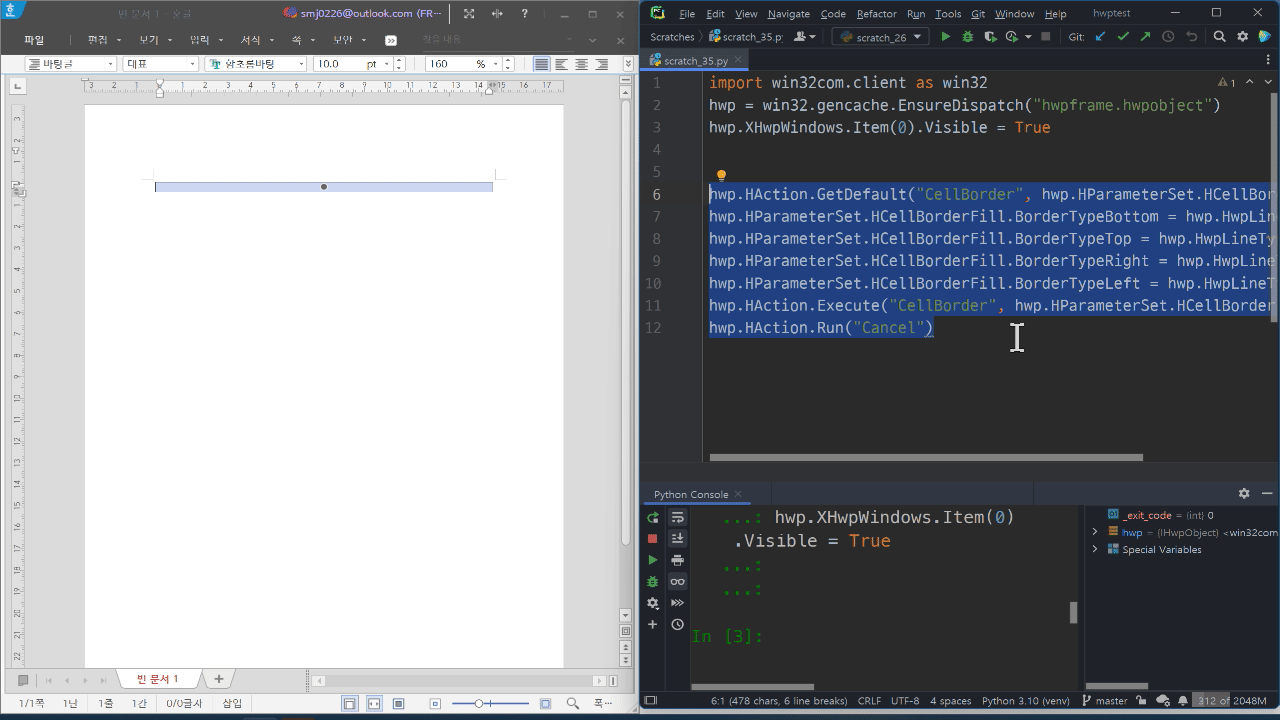 hwp = win32.gencache.EnsureDispatch("hwpframe.hwpobject")
