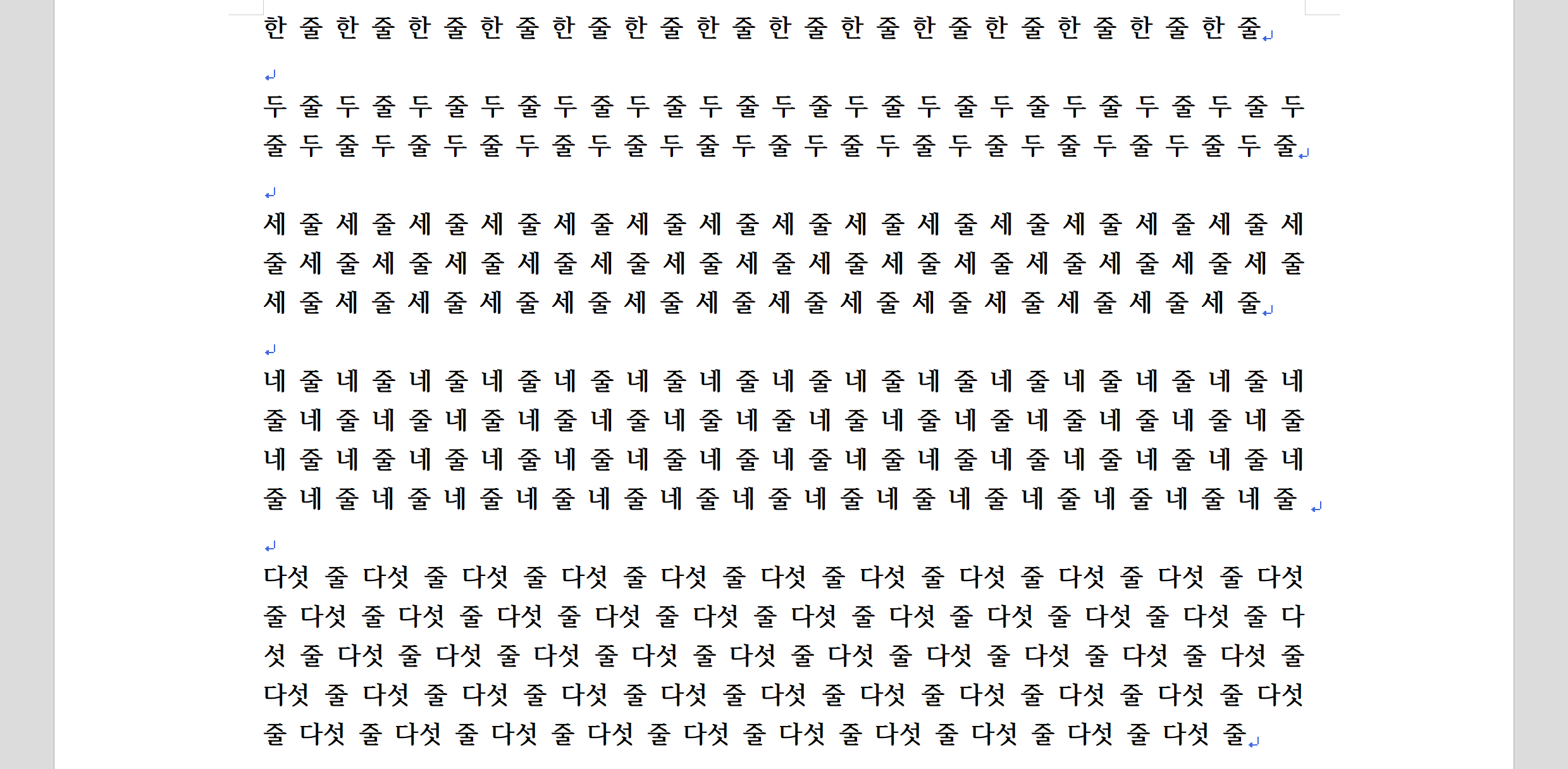 예를 들어 "세 줄"이라는 단어를 포함한 문단은 빈 줄을 포함해서 5번째 문단이지요.