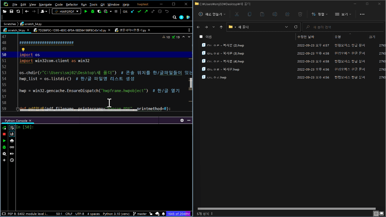 파이썬으로 특정 폴더에 있는 한글(hwp)파일들을 PDF로 전환하려고하는데..