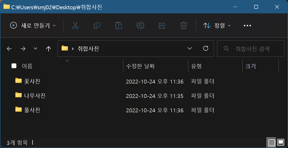 우선 "취합사진"이라는 하위폴더 안에 각각의 제목에 해당하는 폴더를 만들고