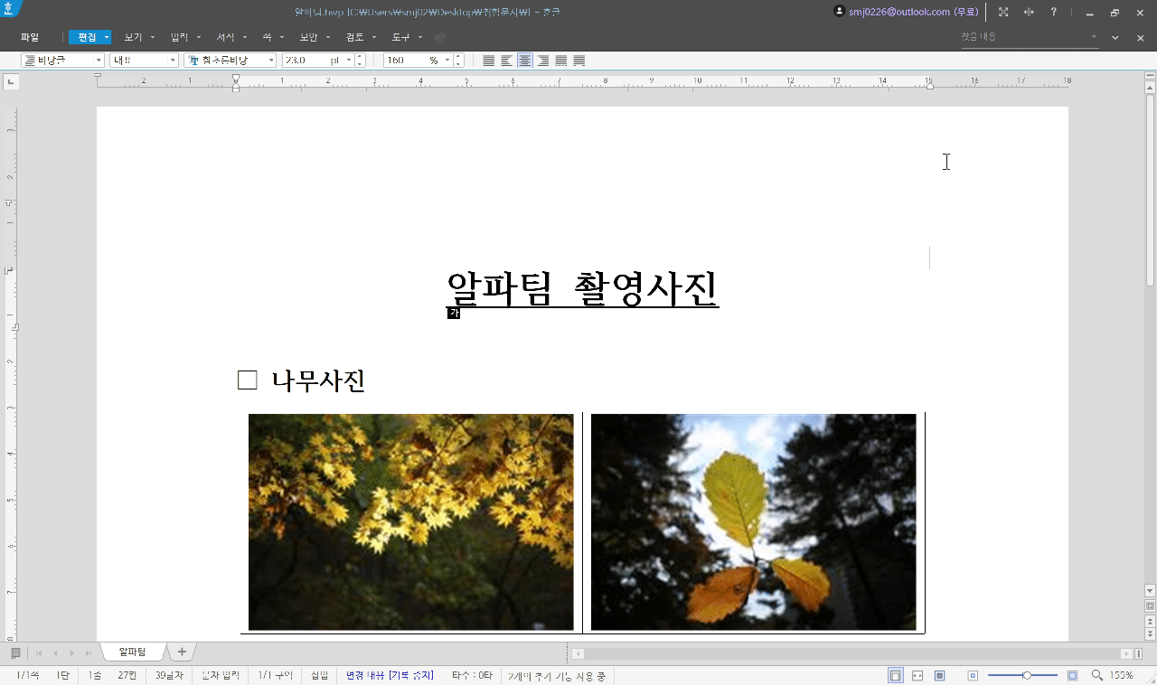 기본적으로 한/글 프로그램은 찾기/찾아바꾸기 기능이 잘 구현되어 있습니다.