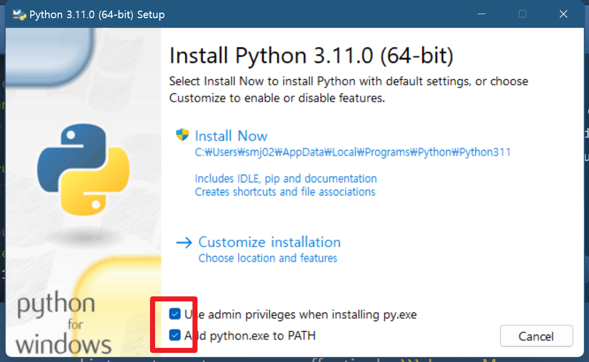 참고로 저는 파이썬이 버전이 여러 개 설치되어 있어서
