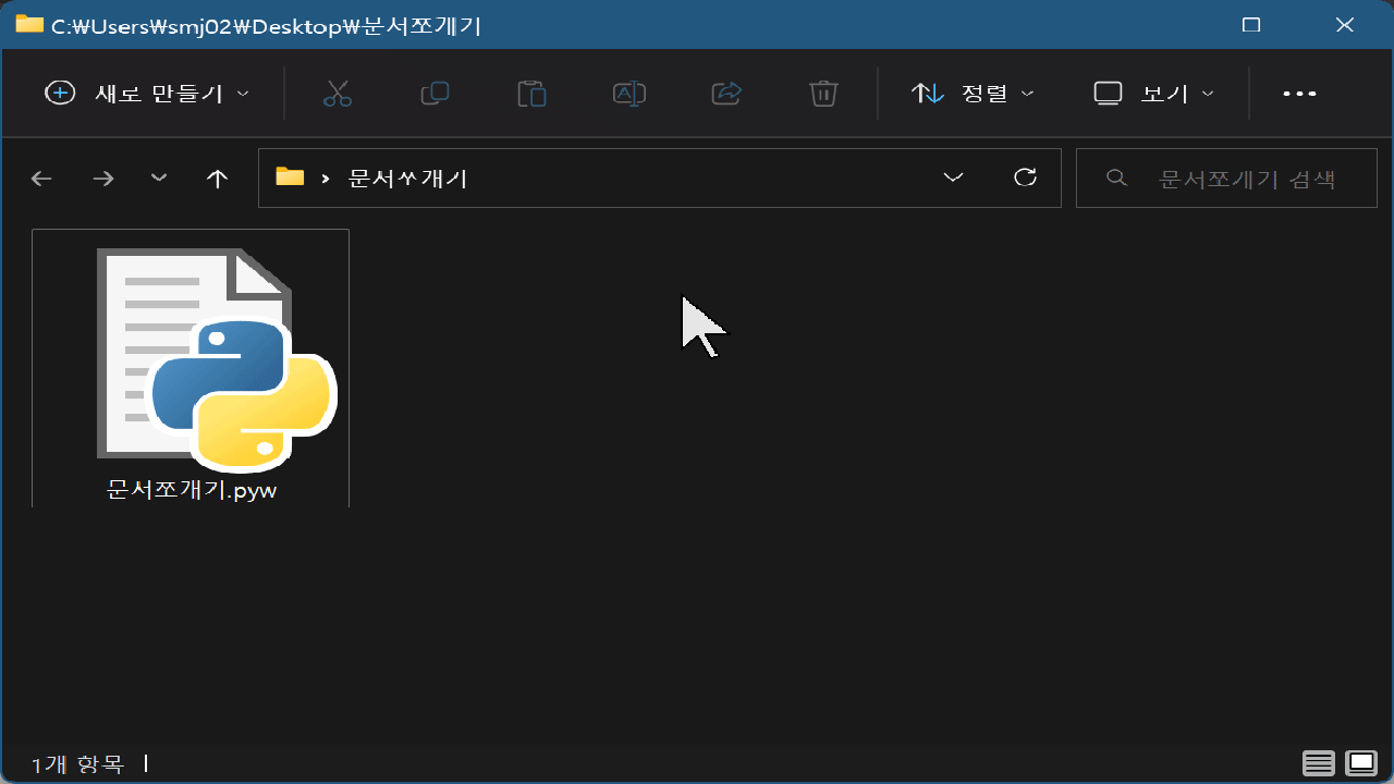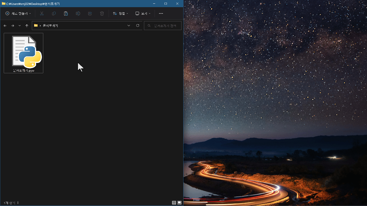 그런 다음 pyw 파일을 더블클릭해줍니다.
