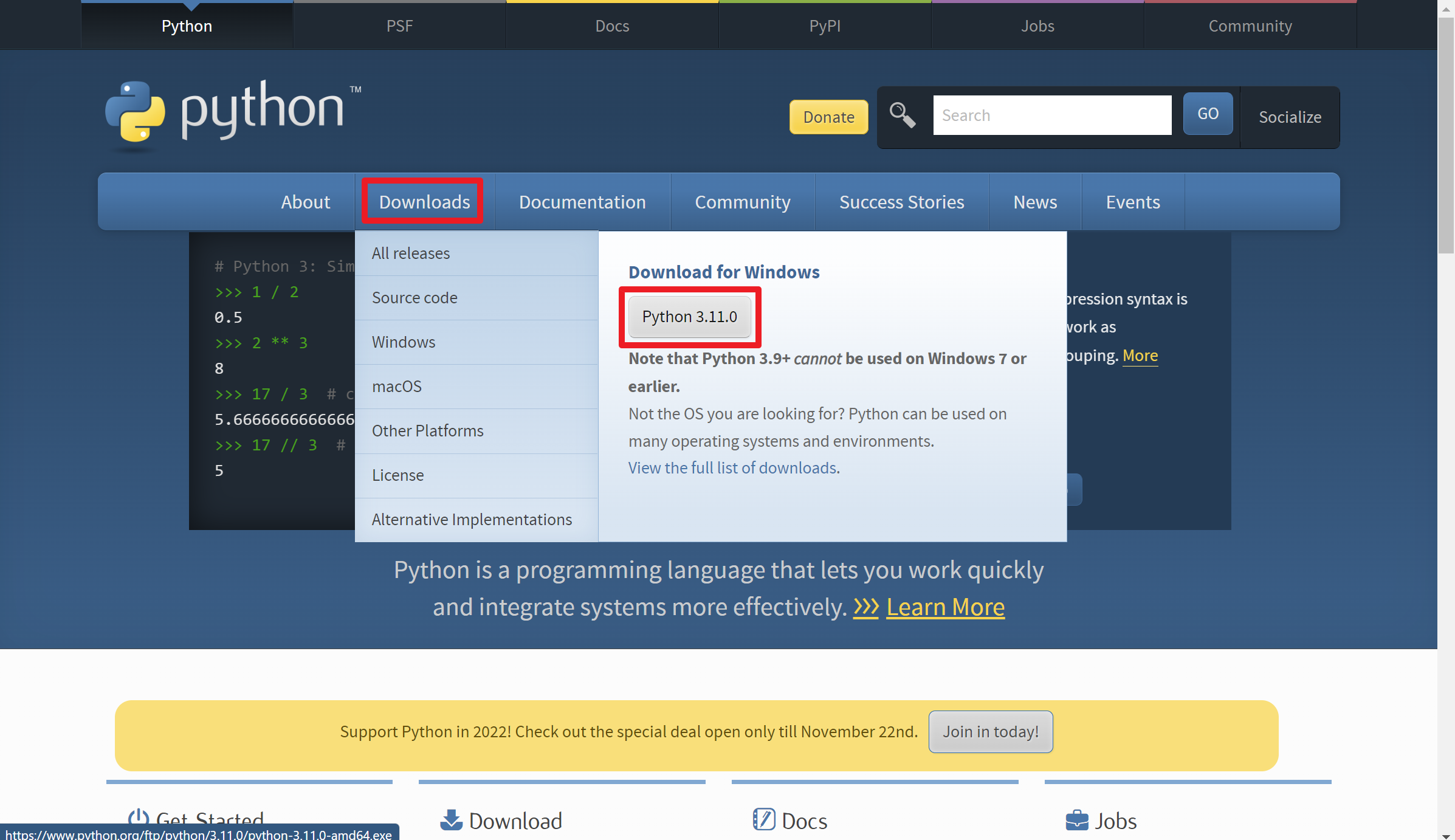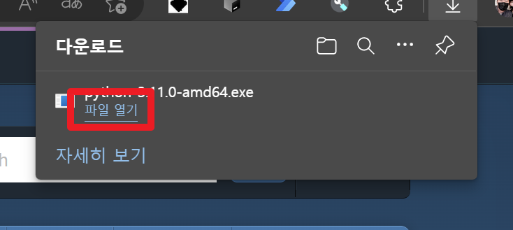 최신 버전인 Python 3.11.0을 다운받는 버튼이 있습니다. 클릭해줍니다.