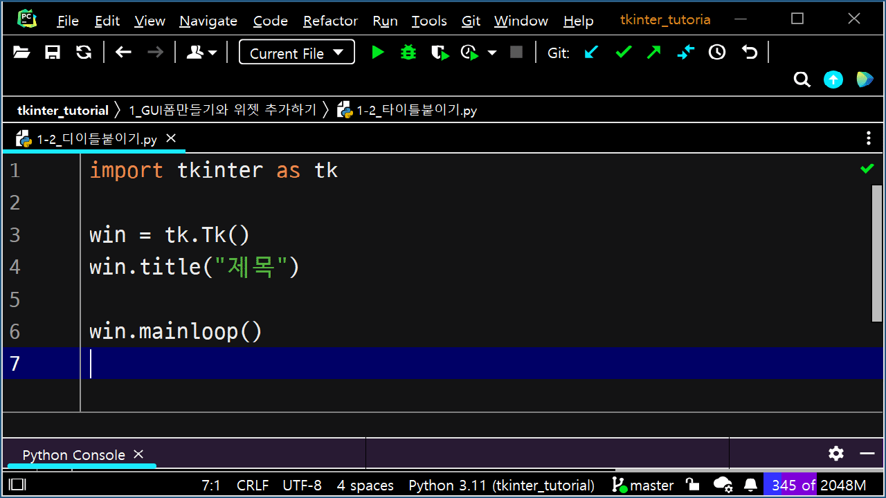 기본적으로 tkinter로 생성한 창에 붙는 타이틀은 "tk"입니다.