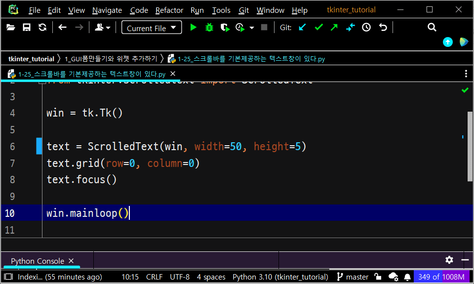 이번 포스팅에서는 : Scrolledtext 위젯 만들기