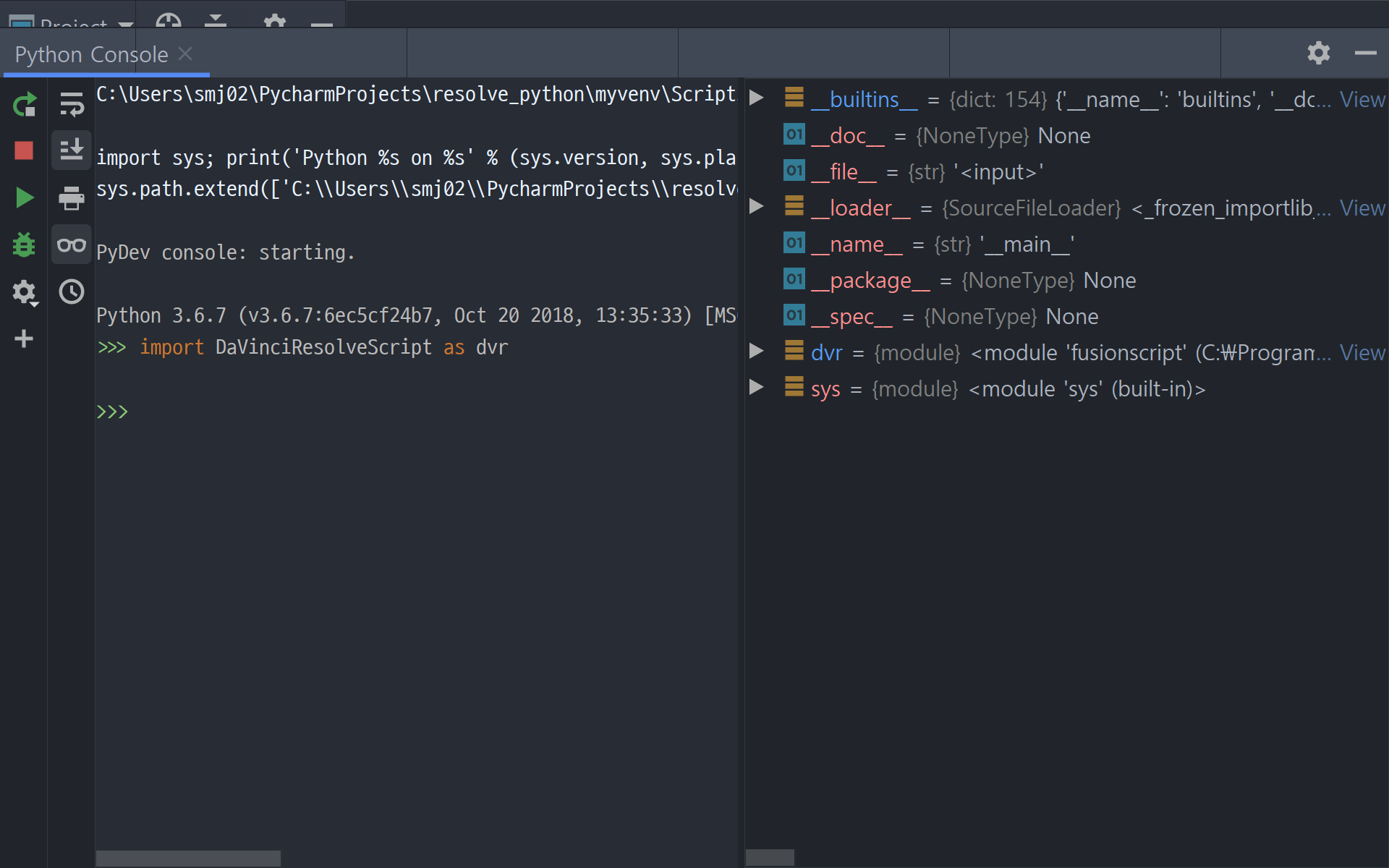 긴 시행착오 끝에 ```import DaVinciResolveScript as dvr```이 실행되었다.