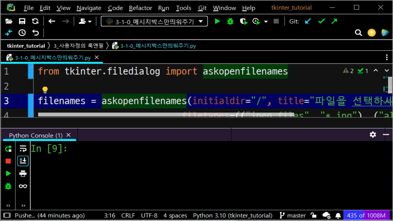 이밖에도 askdirectory나 saveasfilename 등 여러 가지 다이얼로그가 제공되고 있습니다.