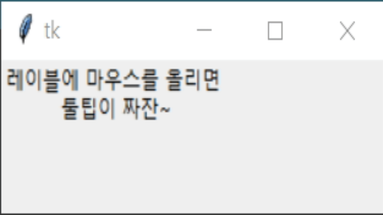 label = tk.Label(win, text="레이블에 마우스를 올리면 \n툴팁이 짜잔~")