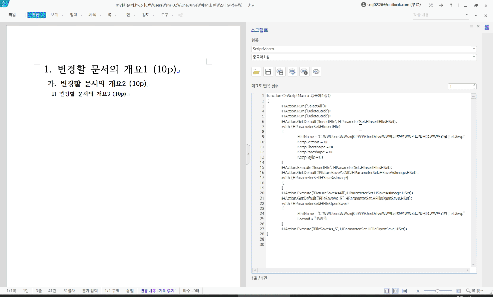 안녕하세요. 한글자동화를 이용해 문서의 서식을 바꾸는 코드를 만들고 싶어 문의드립니다. 회사에서 보고서 작업을 하는데 동일한 문서에서 서식을 다르게 하여 수정 후 내용을 첨가하여 제출