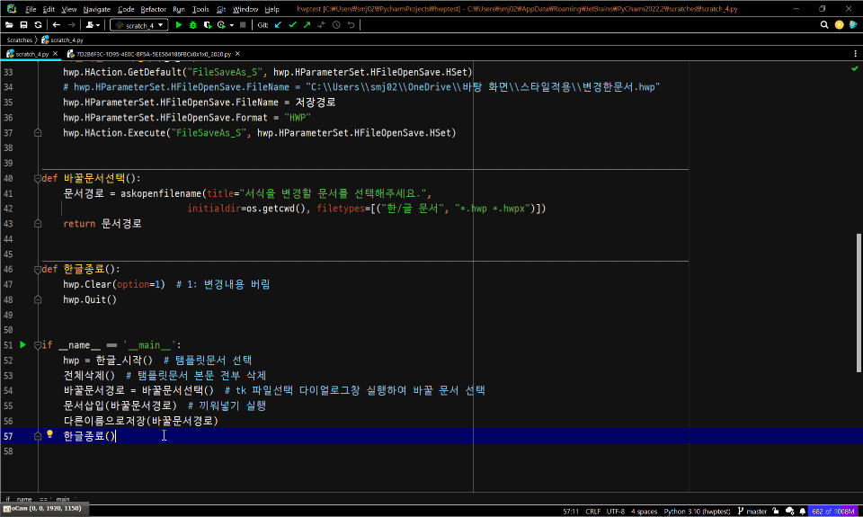 hwp_app = win32.gencache.EnsureDispatch("hwpframe.hwpobject") # 한/글 백그라운드에서 실행