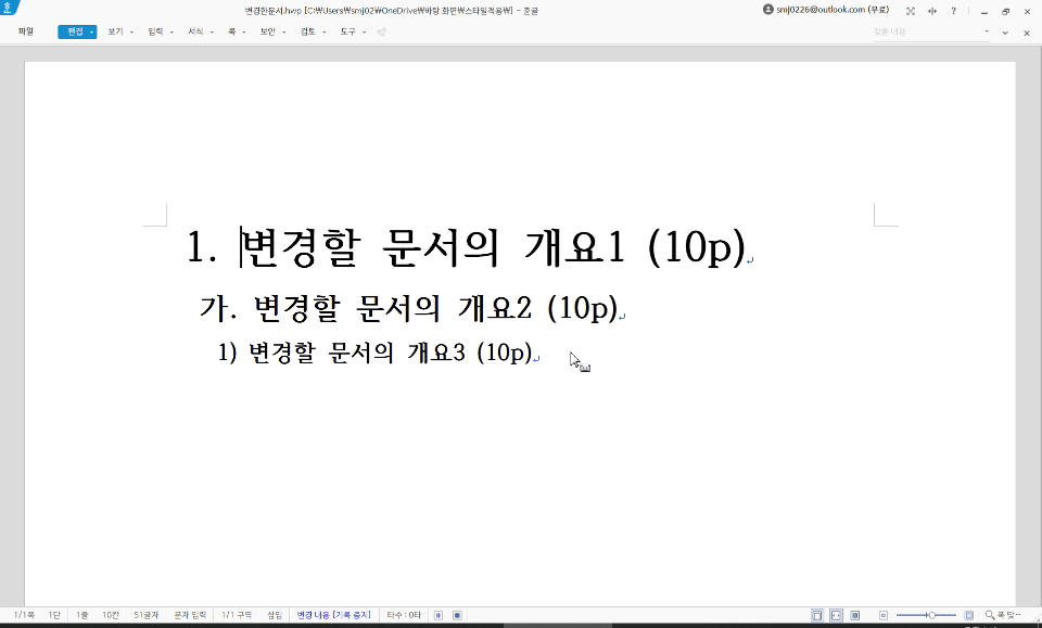 변경하고자 하는 문서B는 아래와 같습니다.