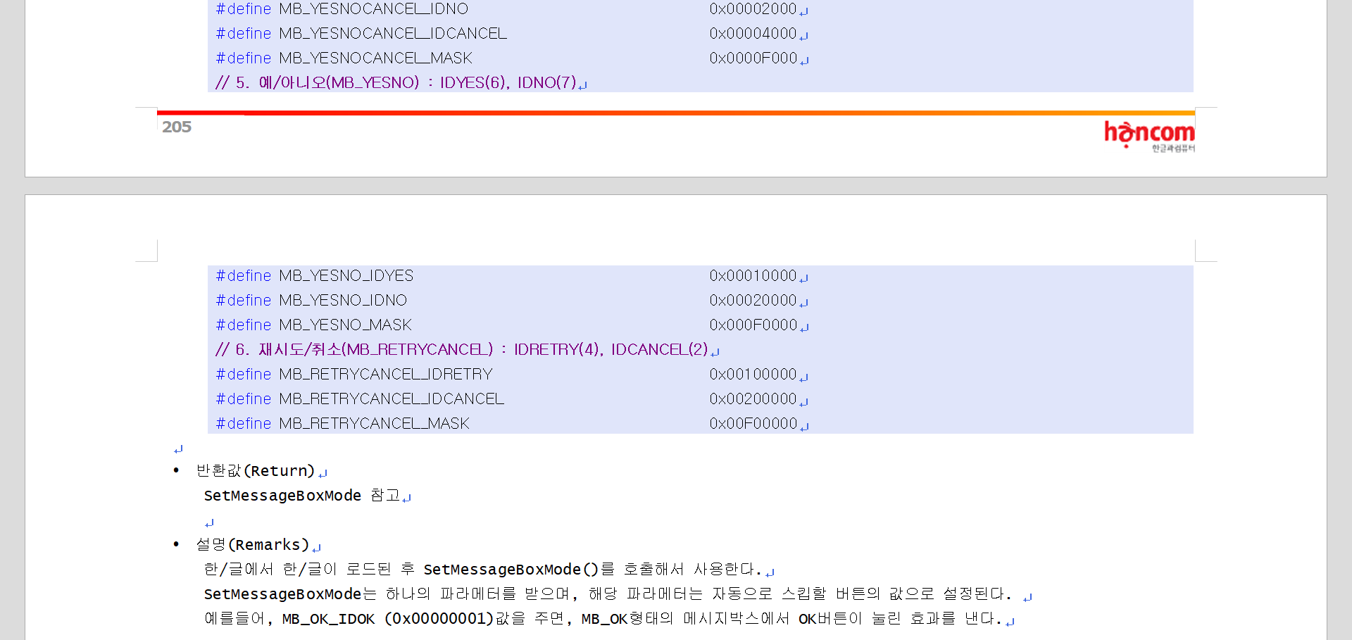 바로 SetMessageBoxMode 라는 메서드입니다. API 문서에 아래와 같이 사용법이 지세하게 나와 있습니다.