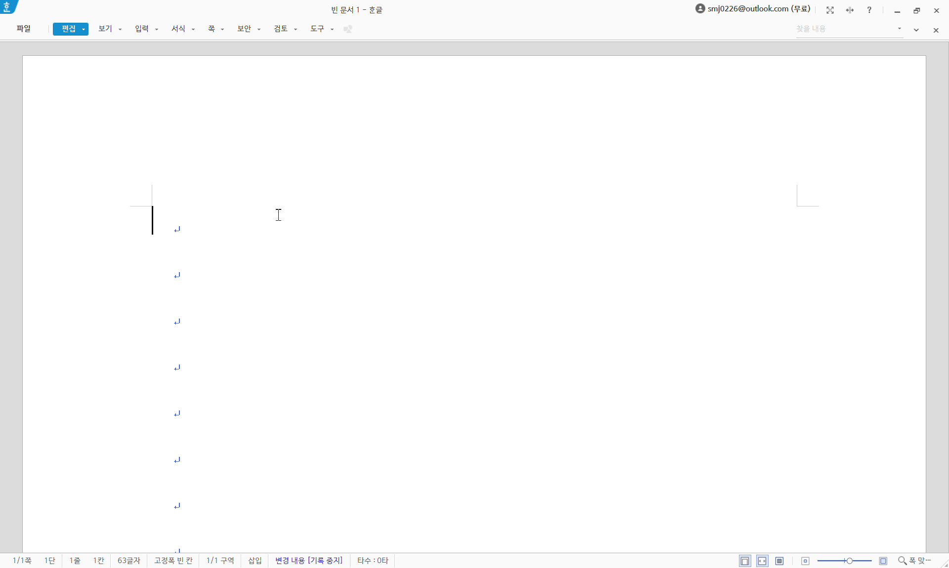 아래 움짤은 문서 내 모든 고정폭빈칸 컨트롤을 삭제하는 예시입니다.