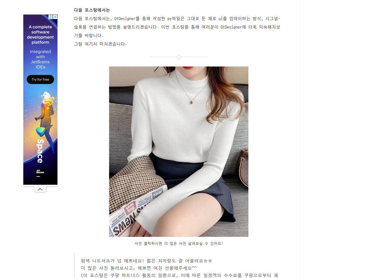 의류 카테고리의 예쁜 피팅모델 분들의 사진을 캡쳐해서 기술포스팅 말미에 올린 다음